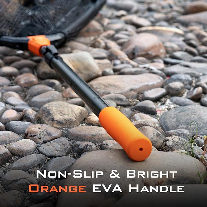 - Bright Color EVA Handle:The bright orange EVA foam handle allows you quickly find the landing net in just a few seconds, even in low light conditions. And this comfortable EVA handle provides a firm handgrip and makes the handle much easier to hold without slipping when your hand is wet or in cold weather.