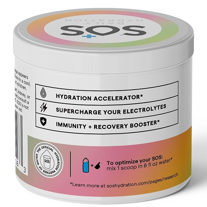 SOS Hydration Electrolyte Powder Drink Mix | 31 Servings | Low Sugar | 15 Calorie | Keto-Friendly & Rapid Rehydration | Rainbow Sherbert