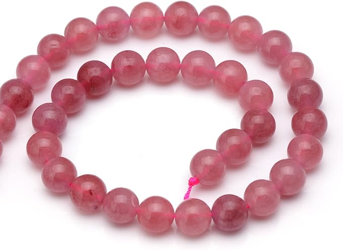 Youngbling Natural Crystal Beads for Jewelry Making,6mm Strawberry Quartz Polished Round Smooth Stone Beads,Genuine Real Stone for Bracelet Necklace 15 Inch(Strawberry Quartz,6mm)