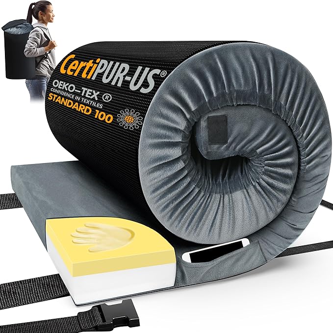 CYMULA Memory Foam Camping Mattress Pad, CertiPUR-US Sleeping Mat, Portable Roll Up Mattress for Adults, Camping Bed Pads for Sleepover, Car Bed with Travel Bag