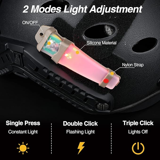 - 【Multi-purpose】This military helmet light is an essential item for cycling, hiking, diving, hunting, boating, training or other outdoor activities. You can stick it on your bicycle seat or tactical helmet, hang it on it on your neck or backpack. Easy to identify potential threats before taking action, clearly visible even in rainy weather