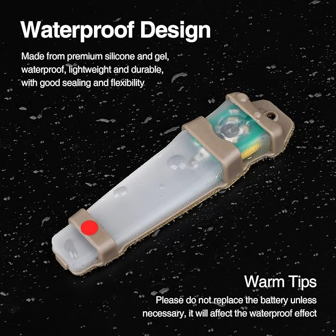 - 【Excellent Performance】The tactical helmet light is made from premium silicone and gel, lightweight and durable, with good sealing and flexibility. The integrally-molded design is not only easy to disassemble, but also can effectively waterproof