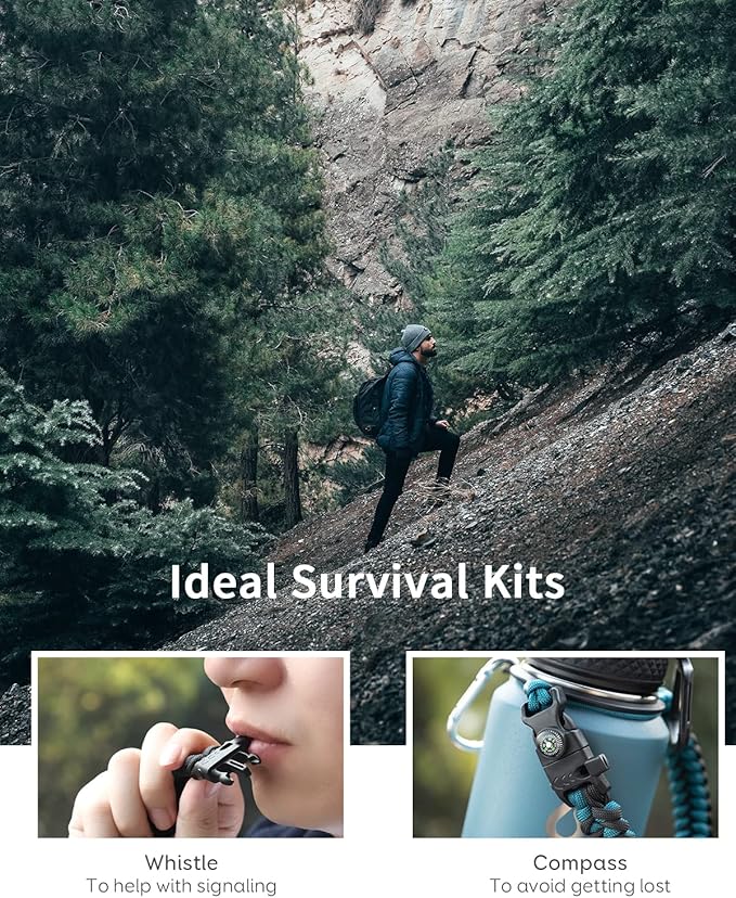 - Full-function Paracord Handle: 40 ounce water bottle come with paracord handle the brilliant paracord of matching colors bring out the bottle with a touch of youthful vibe. Compact compass and handy carabiner make the bottle the ideal survival kit for expeditions in the wild.