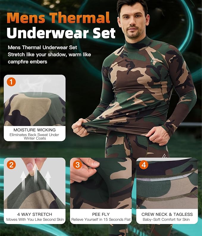 - Flexibility for Any Movement:This long thermal underwear, with four-way stretch, provides full mobility and without bunching,is the perfect equipment for outdoor sports in cold weather and a great gift for men during the various festivals