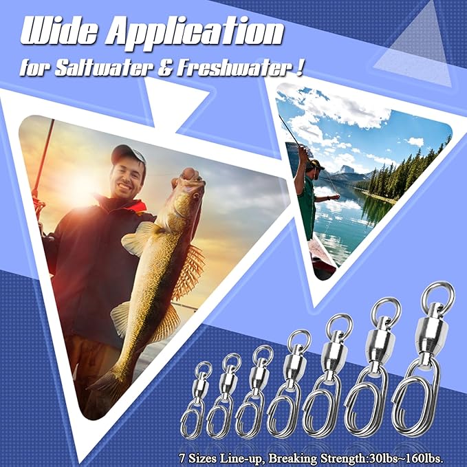 - Muiti Usages for Fishing & Connecting: Our snap swivels stainless can be used in various environments. Polished nickle on the surface of these ball bearing fishing swivel,it can be corrosion resistance,you could use fishing snap steel both in saltwater and freshwater.Whether you are in bank onshore offshore or other fishing ways,it would be your helpful swivels.