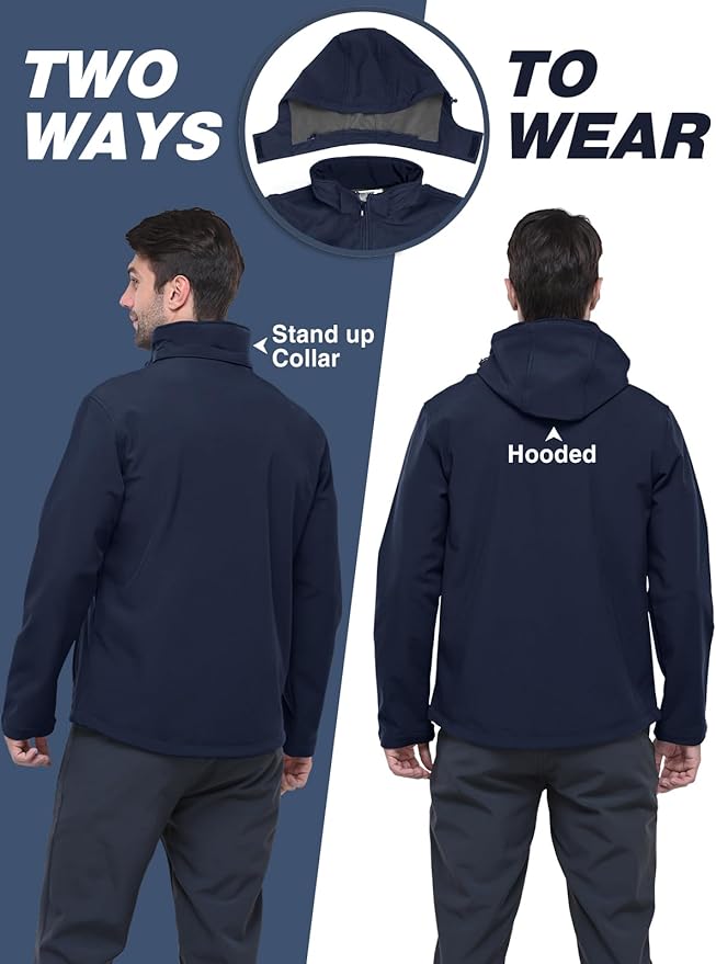 33,000ft Men's Softshell Jacket with Hood Fleece Lined Windbreaker Lightweight Waterproof Jackets for Hiking