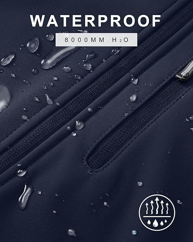 - WATER RESISTANT & BREATHABLE: 33,000ft men's softshell jacket with hood is made of high-quality fabric, which is 8000mmH₂O waterproof and 1000g/m2/24hr breathable can effectively prevent water while maintaining breathability, keeping you dry and comfortable. It is very suitable for outdoor environments with light rain, humidity or snow.