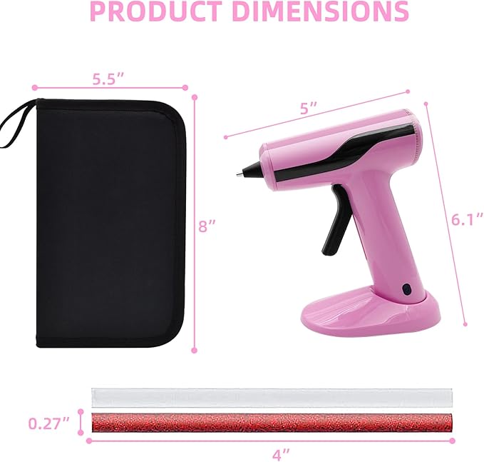 Cordless Hot Glue Gun Kit with 30pcs Mini Glue Sticks, USB Rechargeable Mini Glue Gun with Carrying Case, Stand-Up Base, Smart Power-Off Hot Melt Glue Gun for Crafting, Pink