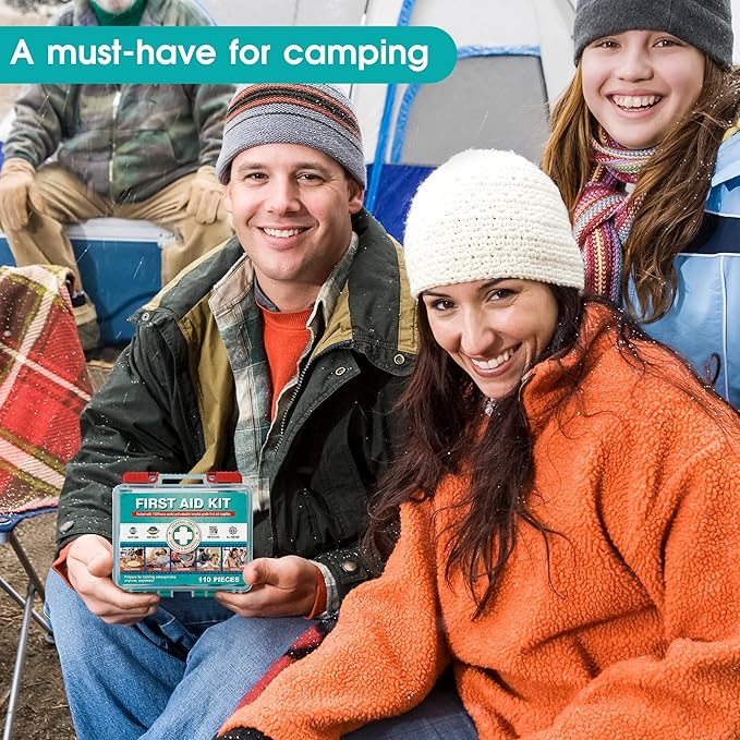 General Medi 110 Pieces Small First Aid Kit - HardCase First Aid Box - Contains Premium Medical Supplies for Travel, Home, Office, Vehicle, Camping, Workplace & Outdoor