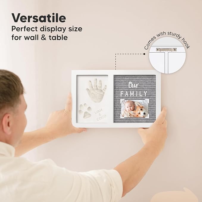 Baby Hand and Footprint Kit with Felt Letterboard - Personalized Baby Gifts for Boys Girls, Newborn Baby Footprint Kit, Dog Paw Print Kit, Baby Keepsake Frame (Alpine White)