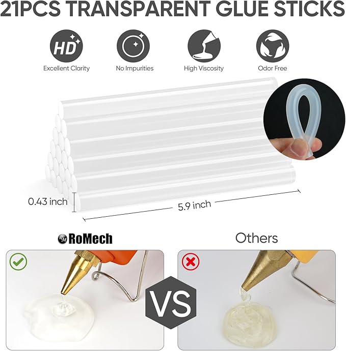 - ✅[DUAL POWER OUTPUTS] RoMech hot glue guns offer dual temperature setting, feed glue at your pace. The simple power switch allows quick temperature adaptation for all your projects. 60W is suitable for crafting projects and delicate materials, maintains 300°F heating temperature and 0.35 oz/min flow rate. 100W is ideal for wood and heavier material, heats up fast at 410°F and higher 0.53 oz/min flow rate.