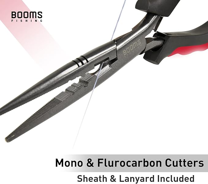 Booms Fishing F03 Needle Nose Fishing Pliers, 9" Fisherman's Pliers, Long Nose Hook Remover, Saltwater Resistant Fishing Gear, Red