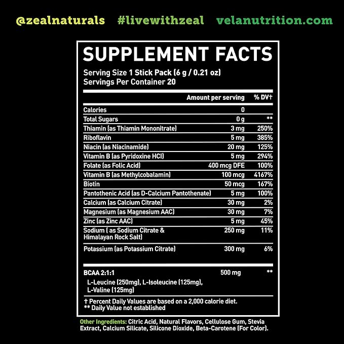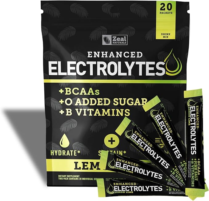 Enhanced Electrolyte Powder Stick Packs (Lemon Lime | 20 Packets) w/ 0 Sugar +BCAAs +B-Vitamins Electrolyte Supplement w Potassium Zinc & Magnesium for Hydration - Keto Electrolytes
