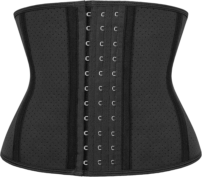 - 【SHORT TORSO WAIST TRAINER FOR WOMEN】 Faja waist trainer uses 9 steel bones and elastic latex sealed in our 9-inch waist belt to provide 360° compression support for your back, 3 rows of hooks and eyelets in front of the belt to provide different levels of abdominal compression, allowing you to adjust size as necessary. and the mesh design is more breathable and comfortable than ordinary waist belts, allowing the waist to be relaxed and not tight during workouts, walks, and other exercises.
