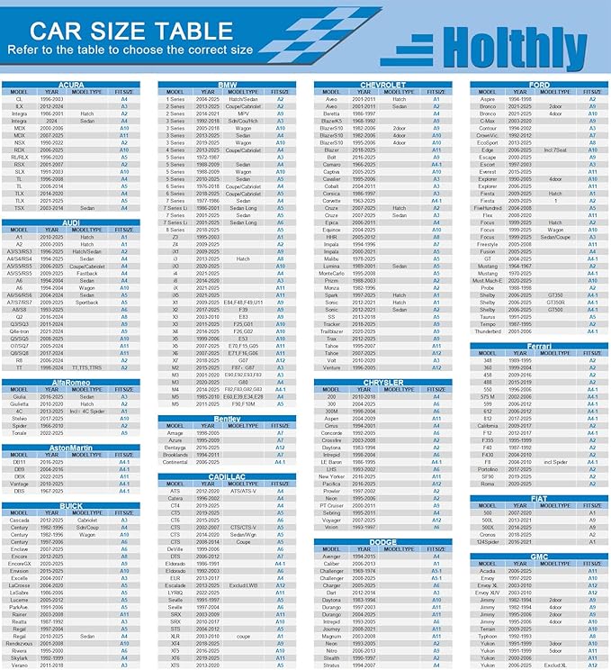 - 〖How to choose the size ?〗-Holthly full car cover provides accurate size chart (picture 4-6), just find your brand/model and year of manufacture in the size chart to match the correct size. 20 years of car cover manufacturing experience allows us to obtain a wide range of vehicle sizes, including sedans, SUV, hatchbacks. Accurate car cover sizing will more fully protect your vehicle and extend the life of the cover. If you can't find your model please contact us for confirmation, thank you!