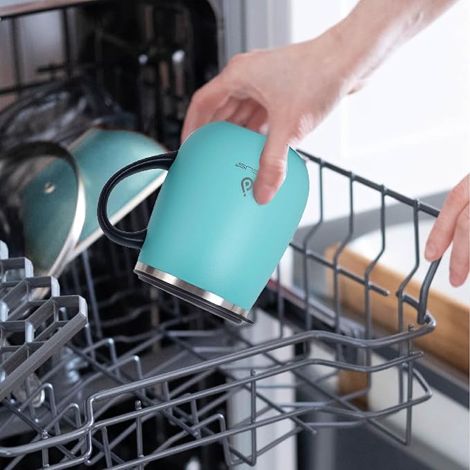 - 【PERFECT CAPACITY】- This travel mug has a 16oz capacity. Its wide mouth makes it perfect for infusing drinks with fruit or ice and for effortless cleaning. Ergonomic handle on the side for a comfortable grip, making it the great outdoor camping mug and the coffee mug in the office as well.