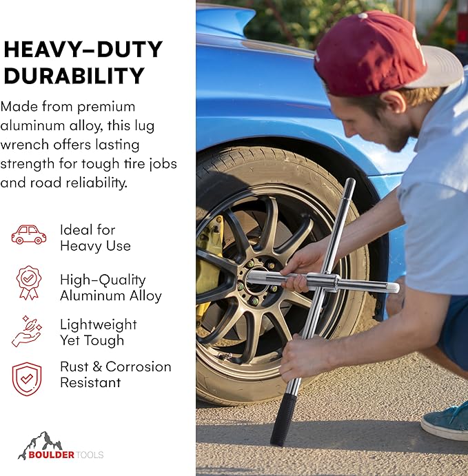 - Heavy Duty Durability: Built from premium aluminum alloy for long-lasting performance; this tire iron lug wrench provides strength for tough tire jobs, ensuring reliability on the road