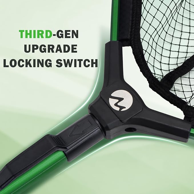 Floating Fishing Net Fish Landing Net, Fishing Nets for Fish, Kayak Fishing Net with Third-gen Upgrade Locking Switch - Lightweight Rubber Coated Fish Net for Easy Catch & Release