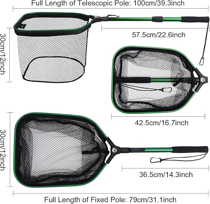 - 【Widely Usage】This fish net is perfect for use on boats, kayaks, canoes, and in various water bodies like streams, rivers, ponds, and the ocean. It works equally well in both fresh and saltwater environments.