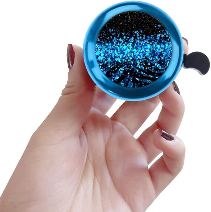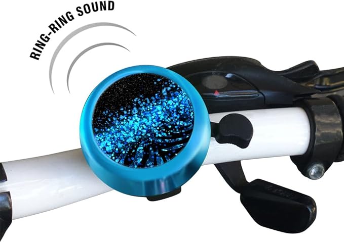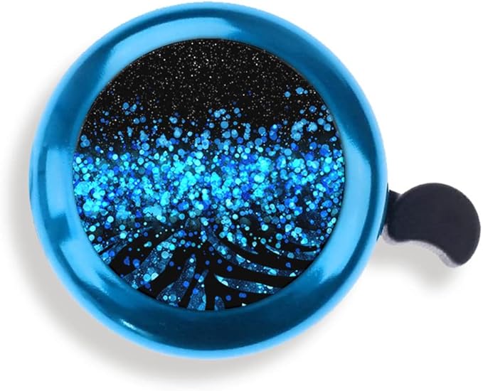 - PREMIUM MATERIAL: Our nice bicycle bells with stylish designs are made of high-quality aluminum material that is lightweight, strong, fashionable and durable. They are ideal for children's bikes, boys, girls and adults. The aluminum bike bell's diameter is about 2.12 inches (5.38 cm) that can be easily installed on the right or left side. NOTE: IT DOES NOT HAVE REAL GLITTER, JUST A PRINT OF GLITTER WITH SHINY BLING LOOK.