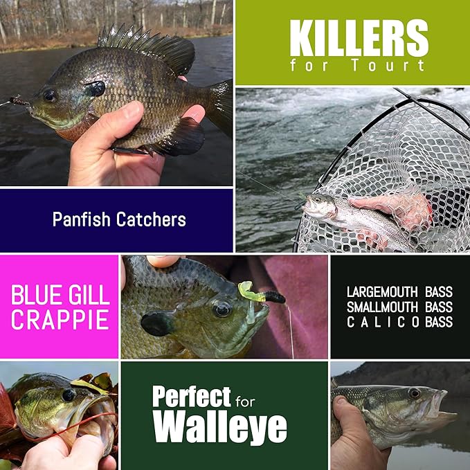 Crappie Lures Tube Lures Jigs Heads Worms Swimbaits Kit, 165, 124, 50 Pcs Pre-Rigged Crappie Jigs Tube Hooks Soft Plastic Grub Worms Baits for Bass Trout Freshwater Saltwater Fishing
