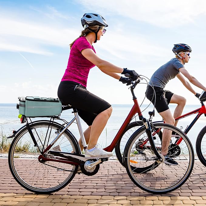 - {Installation & portable} With adjustable mounting straps for quick installation and removal. Fits for most of racks, such as mountain bikes, cruiser bike, e-bike, etc. Use shoulder strip to take this truck cooler bag with you if you go to the beach or strolling.