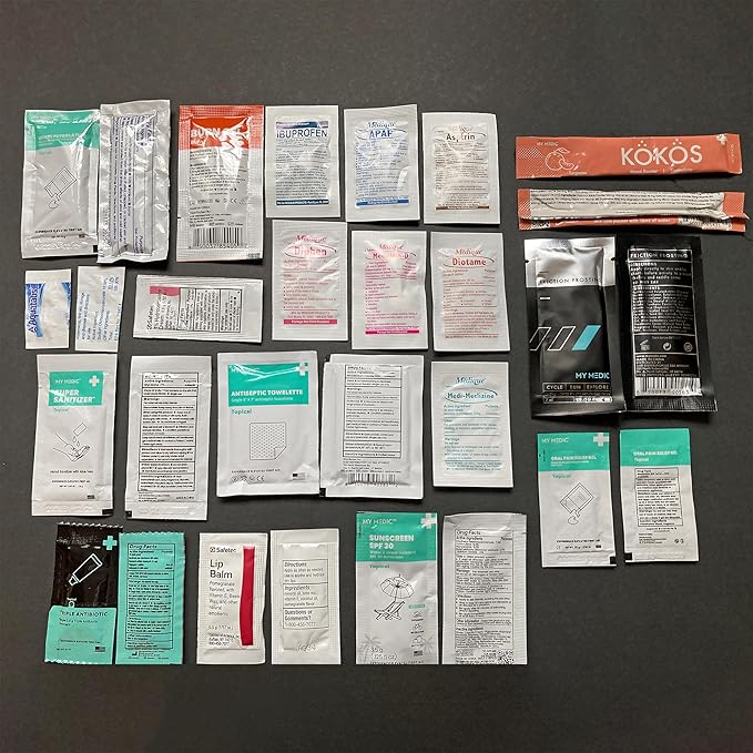 - COMPACT SURVIVAL KIT -This small first aid kit, equipped with over 45+ life-saving supplies, is a camping essential for both minor and severe injuries. Ensure you have the necessary camping supplies with our first aid kit for camping.