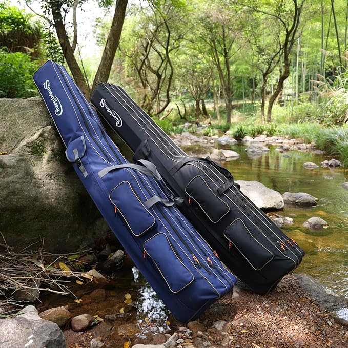 - Capacious Capacity--The Sougayilang fishing rod bag has three main compartments to fit your rod and reel and other accessories. Multiple pockets provide a large capacity for your fishing tackles. The long side outer pocket of this fishing rod case is ideal for storing fishing equipment such as Carp Alarms,rods pod, fishing nets ect.