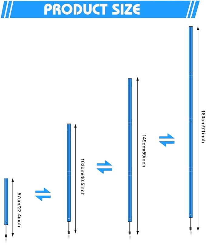 - Easy To Use】:The soccer equipment for training set is detachable and assembled with a total of 6 training poles. A pole can be divided into 4 poles and a ground peg. The height-adjustable design of the agility pole is suitable for multi-age athletes, you can adjust the height of the bar according to your training goals. easy to operate, easy to use. These training poles are perfect for coaches who are training a large group at club or college level.
