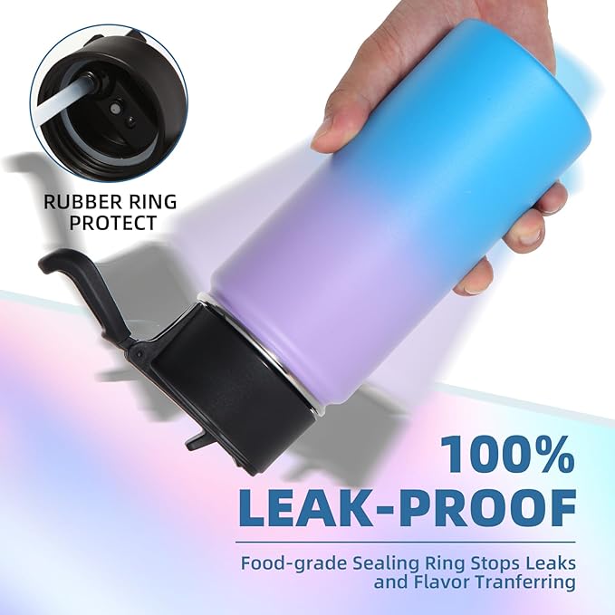 - 【Vacuum Insulation and Nice Size】Designed with double walled vacuum insulation, featuring superior insulation and a condensation-proof design. Volhoply Water bottle can keep hot for 12 hours and keep cold for 18 hours, allowing you to enjoy your favorite flavor in the long run. The cups fit on the car and bike cup holder and inside the backpack,for your hiking, biking, beach, camping and fitness