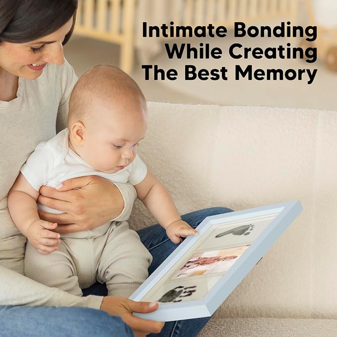 Inkless Baby Hand and Footprint Kit Boy, Girl - No Mess Ink Pad for Handprint, Clean Touch Dog Paw Print Kit, Personalized Baby Shower Gifts, Nursery Newborn Keepsake Frame (Mist Blue)