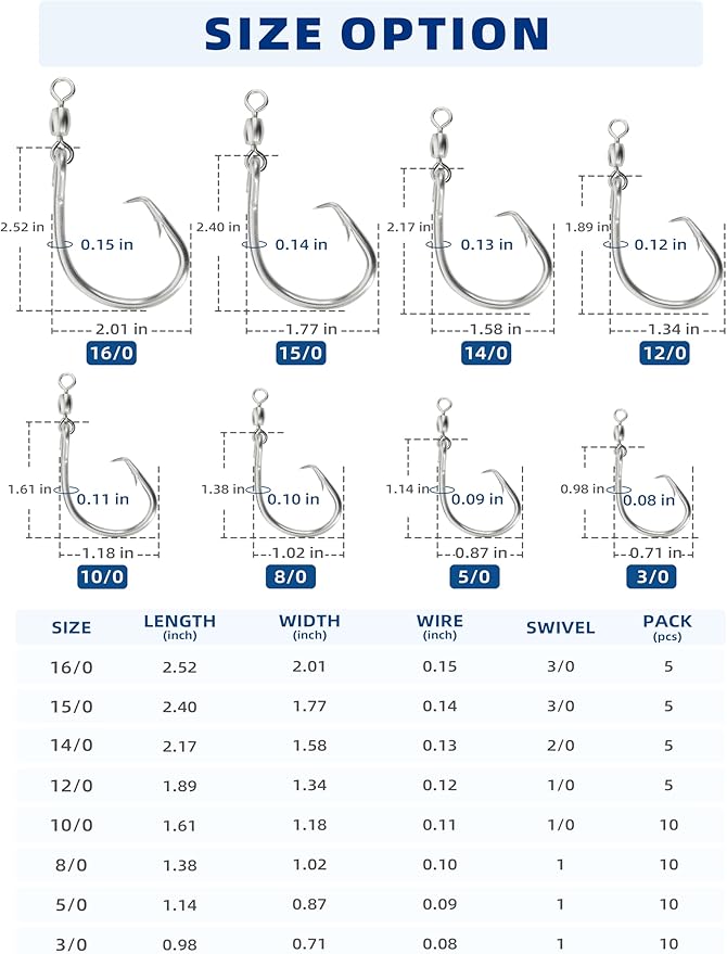 - Wide Range of Applications: The offset circle hook with swivel is a versatile tool suitable for various fishing techniques and species, whether you're targeting bass, catfish, snook, or a marlin of a lifetime.