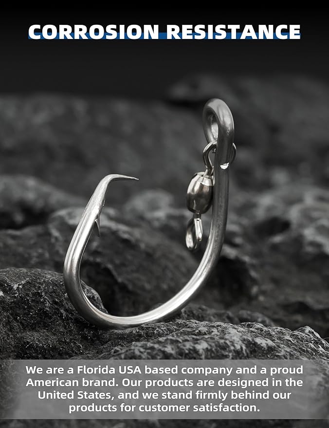 - High Strength Construction: The offset circle hook is meticulously crafted from high quality stainless steel to withstand the harsh conditions of both freshwater and saltwater fishing.