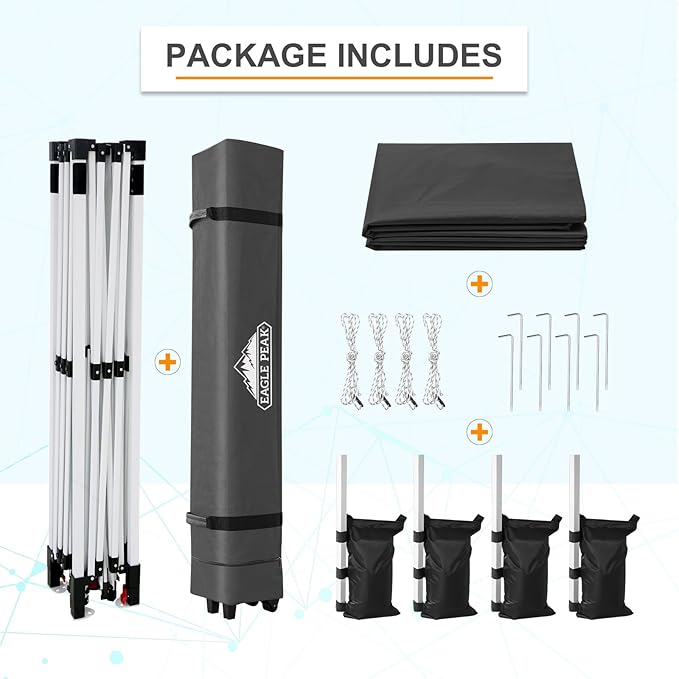 - EAGLE PEAK PROMISE: EAGLE PEAK offers 1-year limited after sale protection from the date of purchase. Unlike many other canopy sellers, EAGLE PEAK offers this for our frames, tops and bags! Please contact our professional service team with any questions