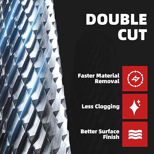 - 【Double Cut Design】The additional cutting edges allow for faster material removal, reduced loading, and a smoother surface finish. Double cut burrs providing better control and precision to ensure stable operation. It suitable for working with a variety of materials, including harder metals like steel and cast iron