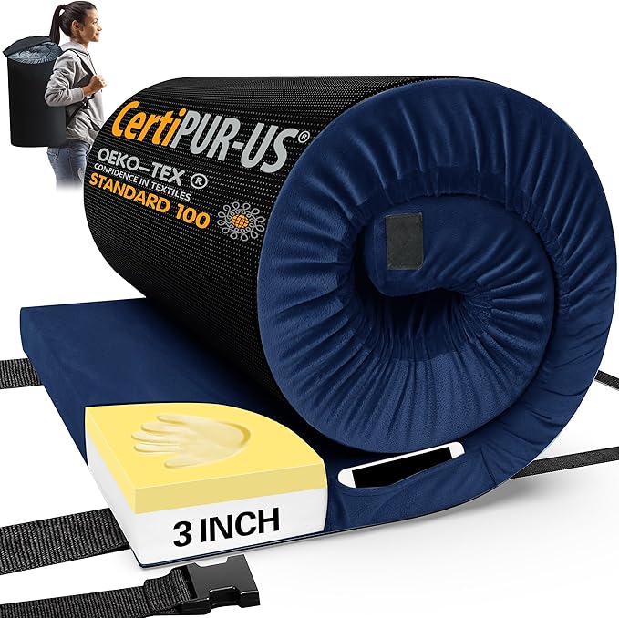 CYMULA Memory Foam Camping Mattress Pad, CertiPUR-US Sleeping Mat, Portable Roll Up Mattress for Adults, Camping Bed Pads for Sleepover, Car Bed with Travel Bag
