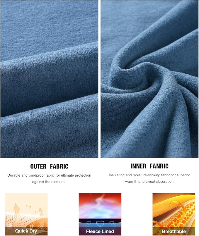 - 【Ultra Soft Warm Fabric】This thermal underwear for men uses the latest Thermostatic Technology is made of microfiber fleece lining for excellent comfort and warmth in cold weather.37°C Thermostatic thermal underwear keeps warm for 24 hours. This Mens Thermal Underwear Set is lightweight and contains a thermal top and bottom, you can wear them all day. Long johns for men fit like a second skin for minimizing heat loss, lightweight but warm.
