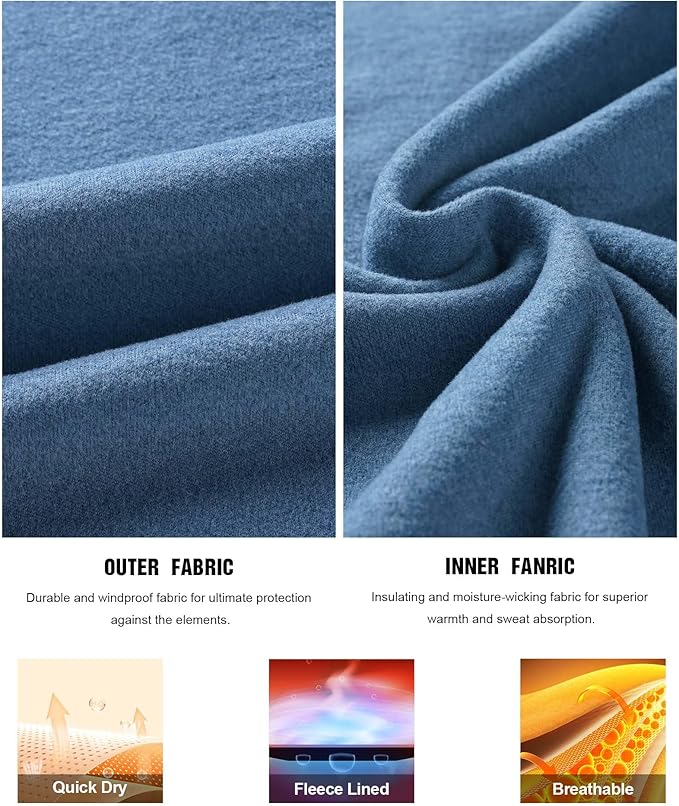 - 【Ultra Soft Warm Fabric】This thermal underwear for men uses the latest Thermostatic Technology is made of microfiber fleece lining for excellent comfort and warmth in cold weather.37°C Thermostatic thermal underwear keeps warm for 24 hours. This Mens Thermal Underwear Set is lightweight and contains a thermal top and bottom, you can wear them all day. Long johns for men fit like a second skin for minimizing heat loss, lightweight but warm.