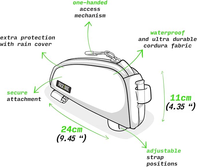 - Weather Protection: Equipped with a hidden rain cover, this top tube bag ensures that your phone, battery, cables, and other electronic items stay dry even in heavy rain. It's an essential bicycle accessory for all-weather rides.