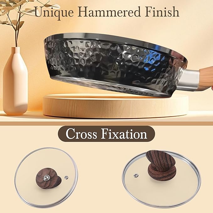 - ๐๐ญ๐ฆ๐ช๐๐จ๐๐ฉ๐ ๐๐๐ข๐ข๐๐ง ๐๐ง๐๐ฃ๐ฉ: Tired of boring cooking? Kitchen Academy cookware sets design with a hammer print, enhances the artistic sense of the kitchen, when you use these pots and pans, you are more in the mood to prepare every meal. Ideal housewarming gift, Christmas gift etc for family and friends