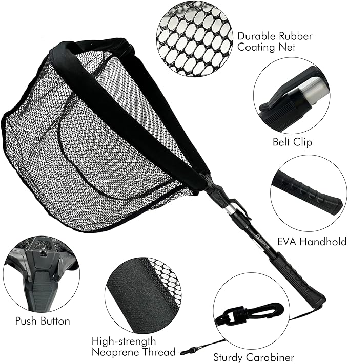 - 【Rubber Coated Net】The rubber coated net has no hooks. The unique longitudinal mesh structure keeps fish in one direction, making it easy to catch and release fish. The non-absorbent coating also prevents the net from getting wet or absorbing odors.