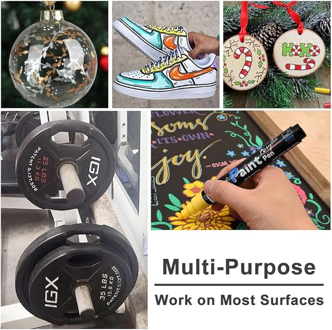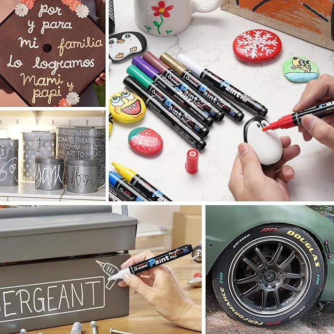 - High Quality: Durable medium round nib allows smooth and precise application. These acrylic paint pens are perfect for drawing, painting and coloring in arts and crafts, DIY projects, scrapbooks, gift card marking, journals, calendar, planners, coloring books, tires and more