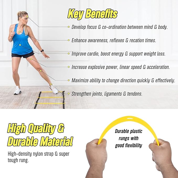 - Our Sports Agility Ladders is Ergonomically Designed and made up of High-Quality Nylon Material, Providing you Best Experience and Tangle Free
