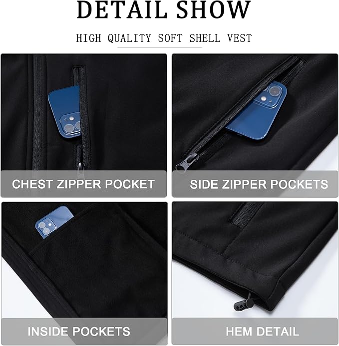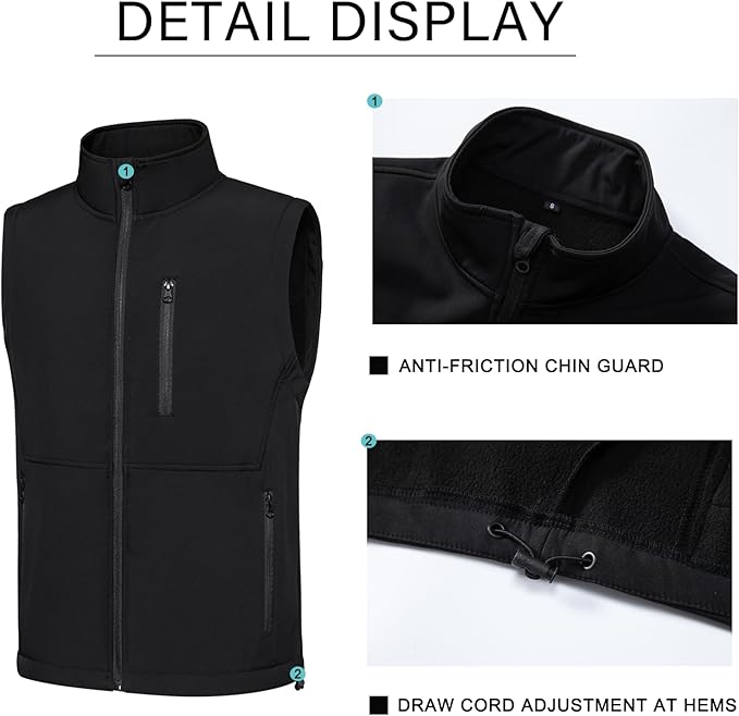- LIGHTWEIGHT& BREATHABLE: Men's Softshell vest is made of 100% polyester, windproof outer soft shell and fleece lining inside, the double layer fabric is both warm and durable, providing good protection in cold weather