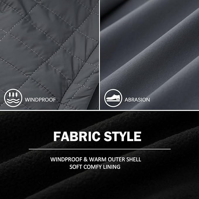 - WINDPROOF:Men's winter vest outer is a Windproof softshell fabric and fleece lining can maintain the body temperature well, lightweight fabric, durable, anti pilling, wrinkle resistant, wind resistant,Good for maintaining body temperature.