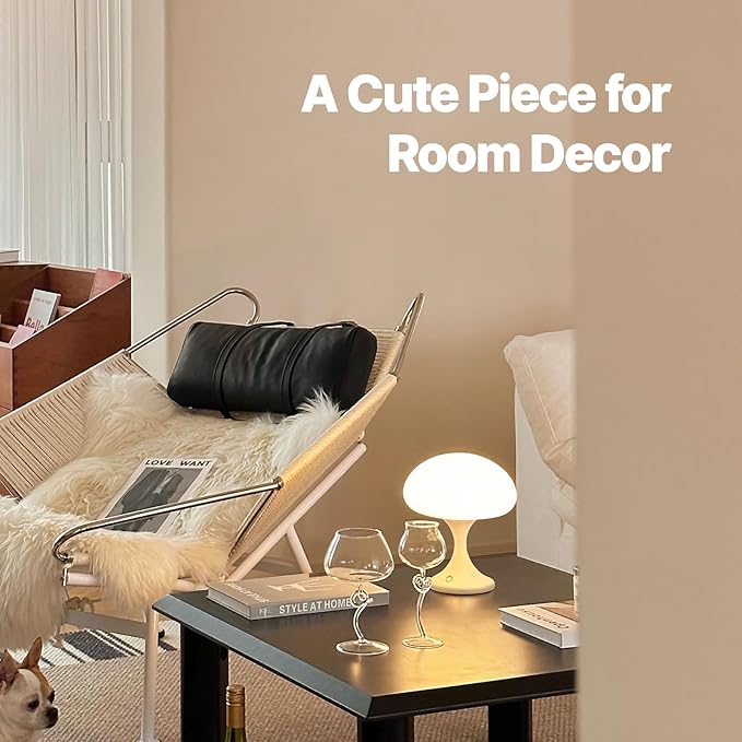 - Stepless Dimming & 3 Color Temperatures; This mushroom lamp is equipped with a touch control button, allowing you to customize the brightness and color temperature; Enjoy a wide spectrum of brightness settings, ranging from 6% to 100%, ensuring that this cordless table lamp delivers optimal lighting for various purposes; Also, our touch nightstand lamp provides 3 color temperature choices; Select from 2700K for a cozy ambiance, 4000K for natural light, or 5000K for a refreshing illumination
