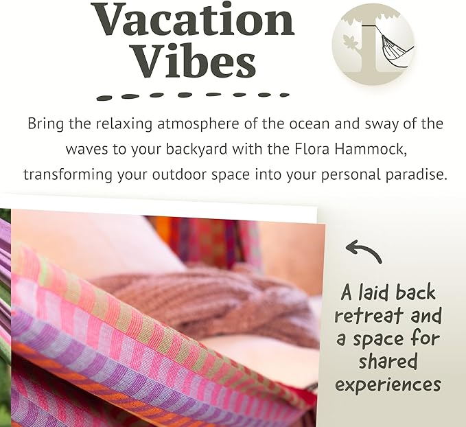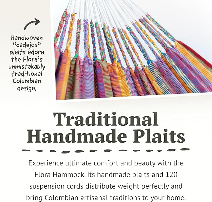 La Siesta® Flora Classic Organic Cotton Hammock - Indoor Outdoor Hammock, Patio Bed Tree Portable Hammock, 2 Person Double Hammock - King, Flower