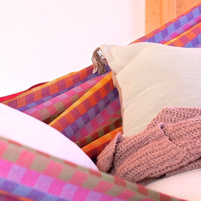- PURE ORGANIC COMFORT: Our hammock, woven from organic cotton, promises unmatched comfort; Its hypoallergenic nature, free from harsh chemicals, is perfect for sensitive skin, making it a top choice for relaxation and even sleep