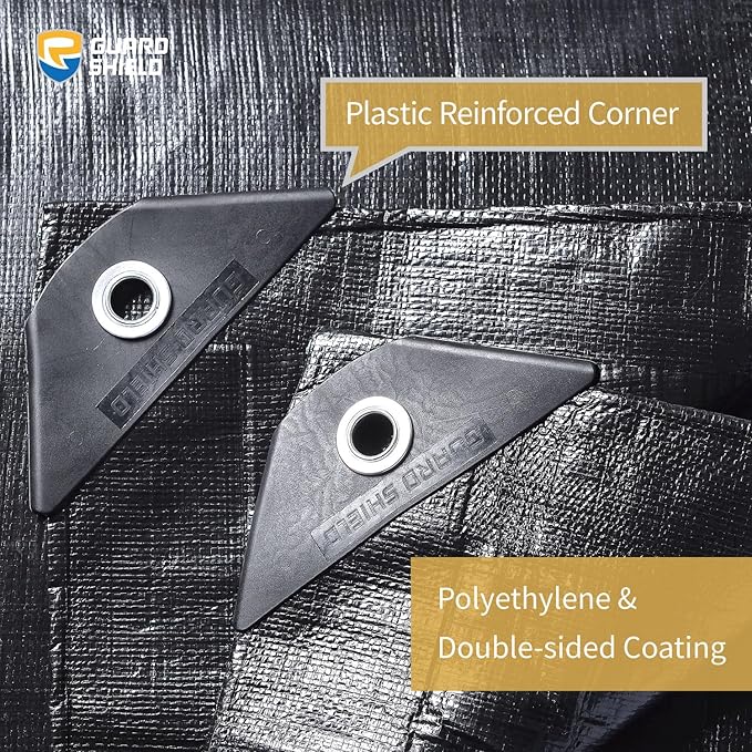 GUARD SHIELD Heavy Duty Tarp 16x16 Feet Black Tarp Large Outdoor Tarps Waterproof with Grommets Cover 12mil