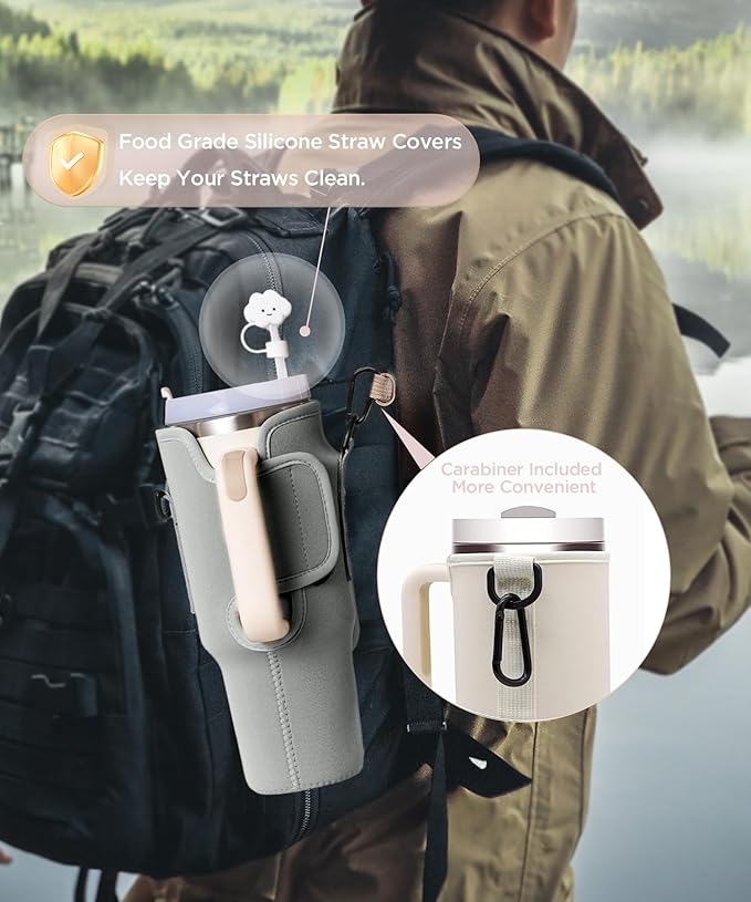 - 【Bonus with Straw Cover and Carabiner Clip】Coming with a straw cap for stanley cup straw, which can prevent the straw from being contaminated by dust in the air, keeps the straw and cup hygienic, let you drink with confidence anytime. and for stanley cup pouch is equipped with a carabiner clip to carry keychains and other accessories.(Note:Due to long term transportation, There is maybe slight odor, don't worry, the odor will dissipate in a few hours in a ventilated place )